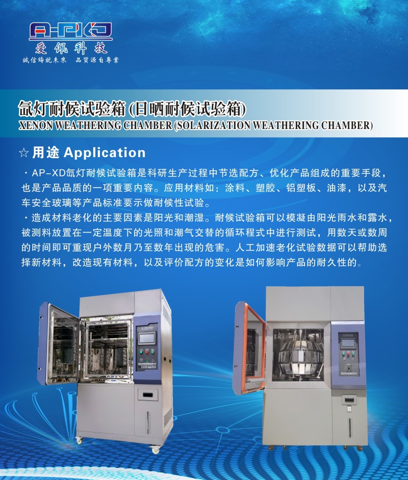 • 氙燈老化箱:除了光照,還能同時模擬溫度、濕度、降雨等綜合環境因素。