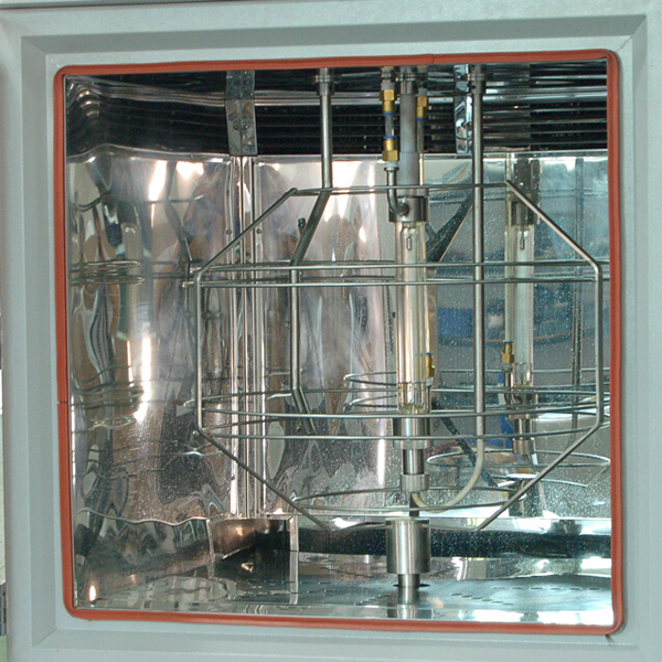旋轉鼓式氙燈老化試驗箱也叫水冷式氙燈試驗箱,之所以叫旋轉鼓式是因為掛測試樣品的樣品架子在運行時不停的圍著氙燈燈管轉運,具有高效、等量的反饋回路輻照度控制系統。旋轉鼓式使用水冷燈系統。由于水是極好的熱量傳導載體,因此旋轉鼓式燈可以在一個非常高的瓦數進行操作以產生高輻照度。